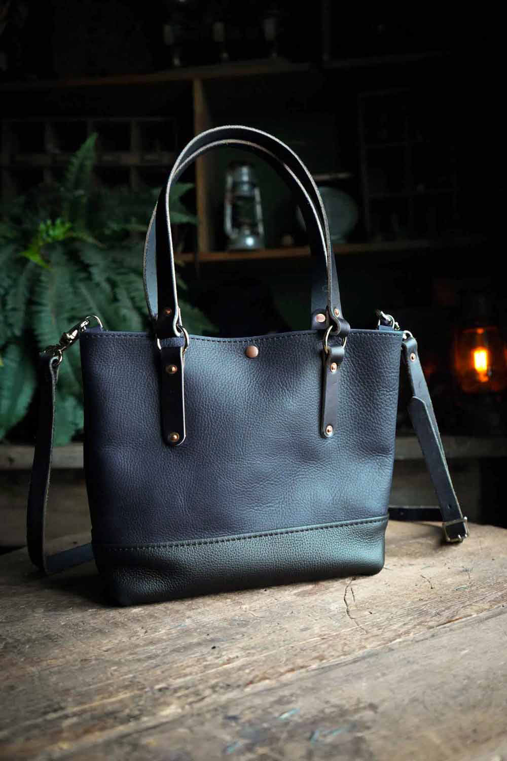 We use full grain leather on all of our bags for it's strength, durability and undeniable character. Not having been altered or corrected, full grain leather has brands, scratches and color variations making each of our handmade leather bags truly unique.