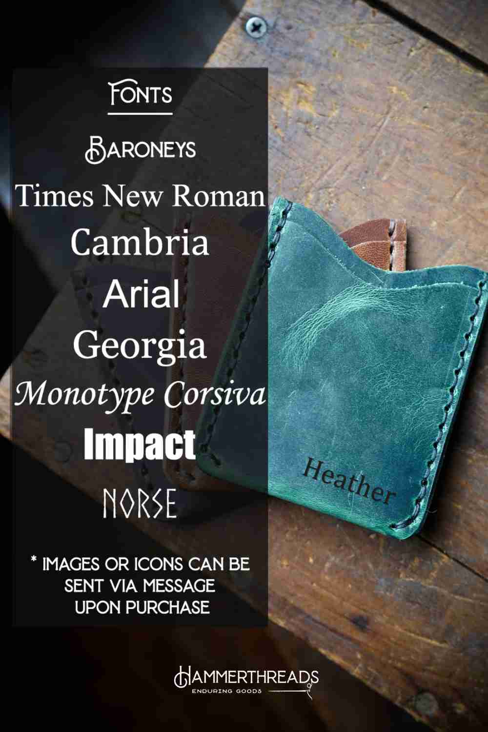 Input your desired name, date or message in the text box with preferred location on the item if applicable. Note your desired font or we will use Times New Roman as the standard, refer to photos to see samples. Images for engraving can be sent to info@hammerthreads.ca upon order confirmation.