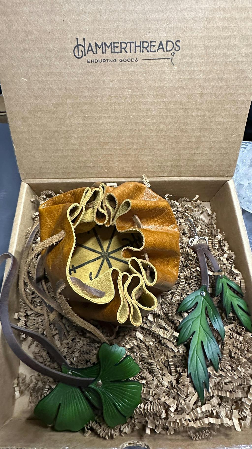 Cut from thick, full grain vegetable tanned leather and hand dyed using water based dyes. Each leaf is shaped and then strongly riveted to your choice of leather lace color.