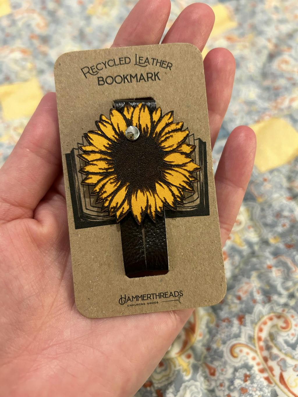 This leather sunflower bookmark will be sure to put a smile on your face while keeping your place amongst the pages.