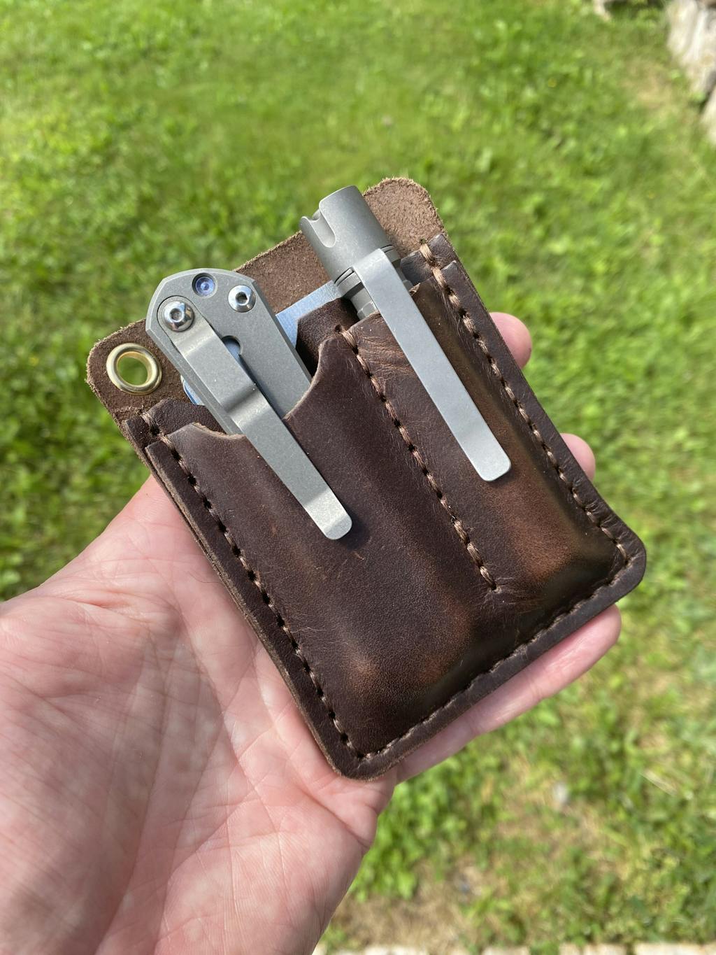 The well-rounded Wayfarer leather pocket organizer is designed to maximize your every day carry needs in a minimalist package. Combining asymmetrical tool slots as well an easy-access card and cash slot located on the front, the Wayfarer is a great way to carry your wallet as well as your go-to tools.