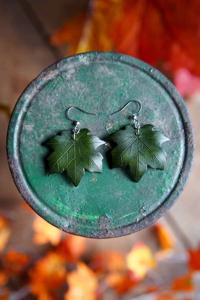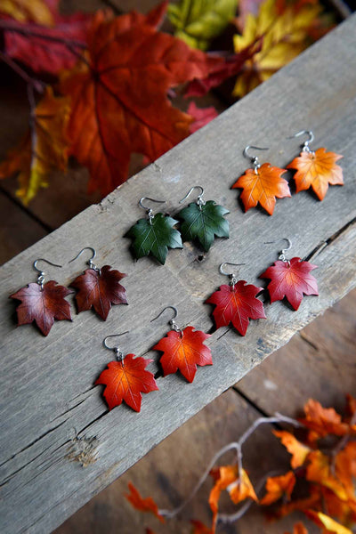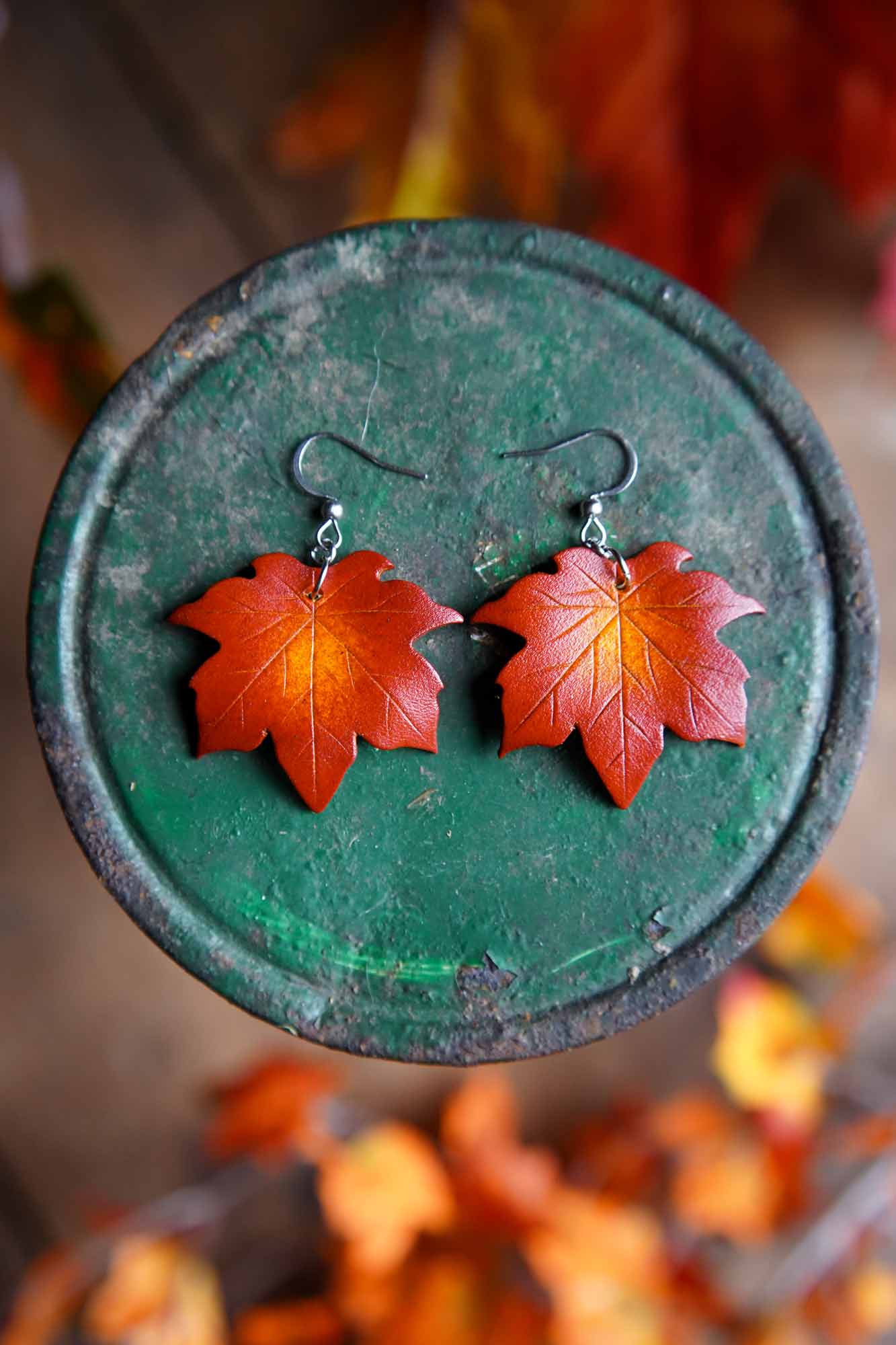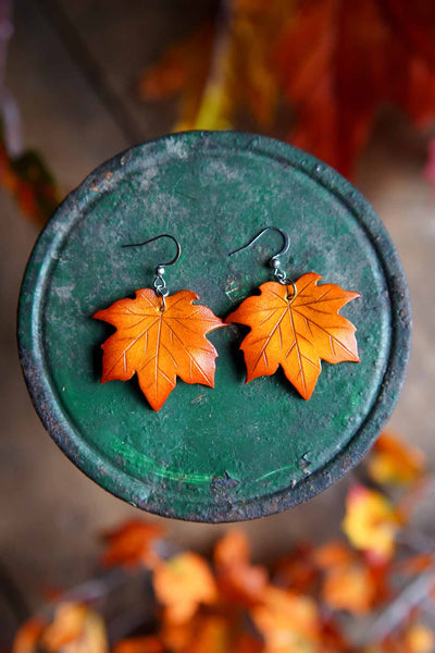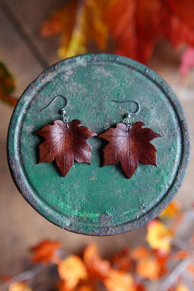 Carry the maple magic all year long with our leather maple leaf earrings. The perfect seasonal gift in rich fall colors or a simple spring green, these uniquely hand dyed maple leaves will bring the magic of the forest to every day wear.